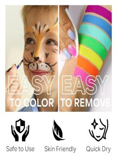 【Smudge-proof & Easy To Remove】The pigment is not easy to fade after drying and ensures that your face body painting will not be stained by sweat. And you only need to use soapy water or makeup remover to clean it.