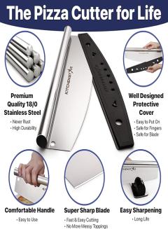 Sharp Rocking Blade: Ensures clean, effortless cuts through any pizza crust, keeping toppings intact. Make slicing quick and enjoyable with this rocker knife